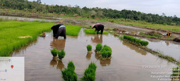 Para perempuan Desa Sekabuk, Sadaniang, Mempawah menanam padi/IST
