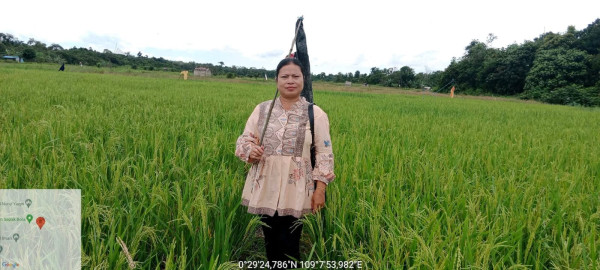 Teresiayati dan sawah miliknya yang tampak hijau nan subur di Dusun Sekabuk, Desa Sekabuk, Kecamatan Sadaniang, Mempawah/IST