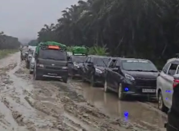 Macet di Jalan Rusak Sekadau, Sejumlah Kendaraan Mengular