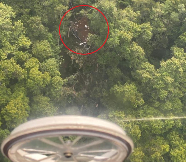 Serpihan Helikopter PK-CFX Terlihat dari Udara, Berada di Lereng Curam Sekadau