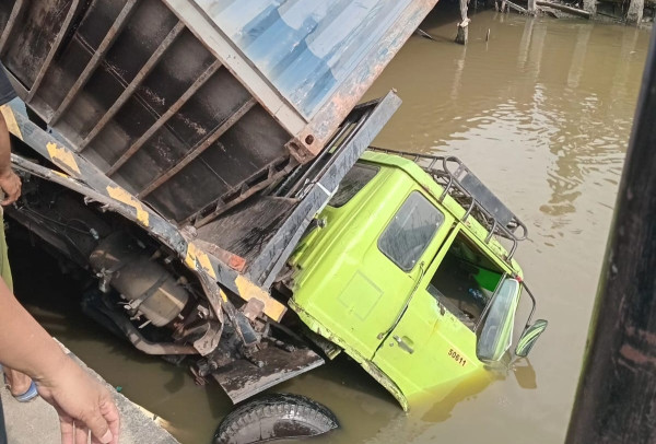 “Kejadian kecelakaan di Sungai Jawi,” terdengar suara seseorang dalam video yang merekam kondisi truk usai kejadian.