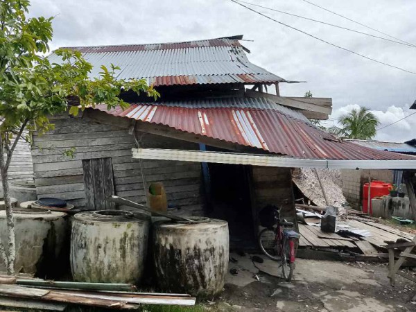 Rumah kayu milik Pak Terubus yang telah berdiri belasan tahun itu kondisinya miring dan terancam roboh sejak hampir empat tahun terakhir. Padahal, rumah tersebut merupakan hak milik sah bersertifikat. Pak Terubus tinggal bersama Tuti, anggota keluarganya yang memiliki riwayat penyakit epilepsi dan harus rutin mengonsumsi obat setiap bulan.