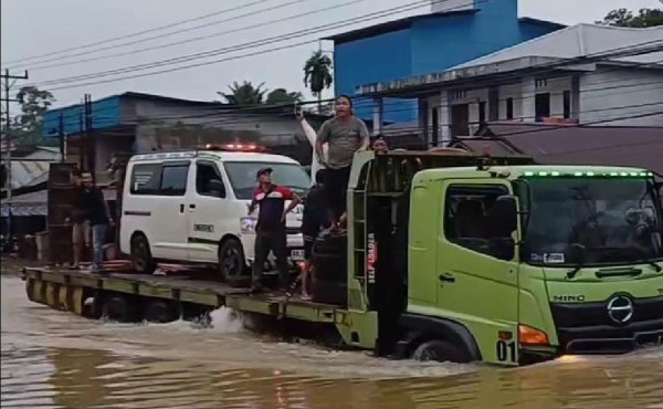 Banjir Rendam Jalan Raya Sosok Tayan Hulu, Lalu Lintas Lumpuh Macet Parah