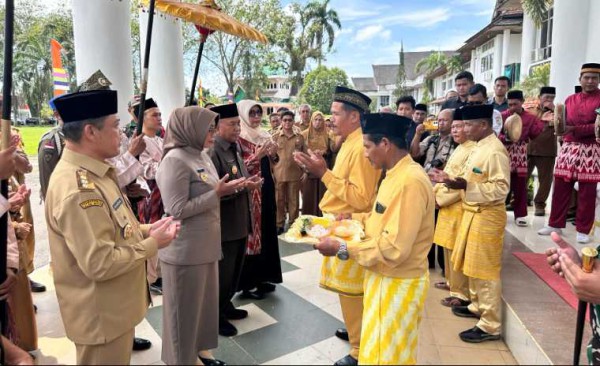Mulai Resmi Berdinas, Bupati dan Wabup Mempawah Erlina-Juli Disambut ‘Tepung Tawar’