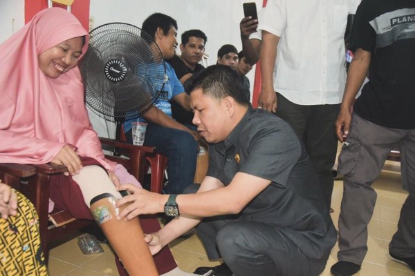 Bupati Satono Bagikan Bantuan Kaki Palsu, Pasangkan Langsung kepada Penyandang Disabilitas