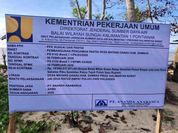 Proyek Tanggul Abrasi Pantai Matang Danau Paloh Dimulai, Telan Anggaran Hingga Rp14 Miliar