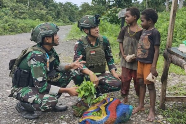 Satgas Koops TNI Habema Gelar Hari Berkat dengan Bagikan Makanan ke Masyarakat