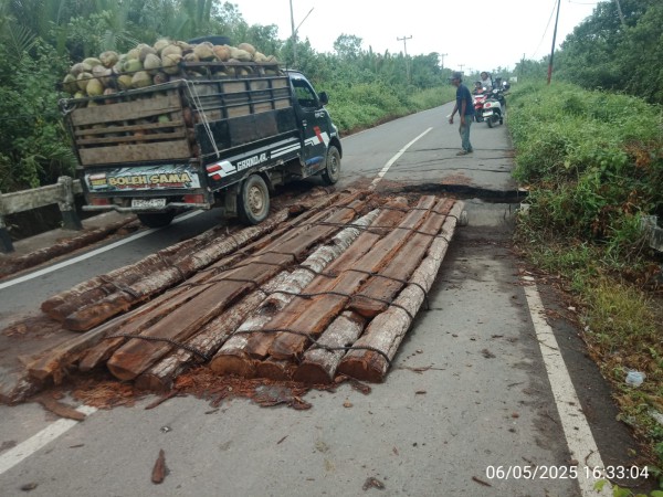 Jembatan di Simpang Hilir Terancam Ambruk, Batang Pohon Kelapa Jadi Solusi Sementara